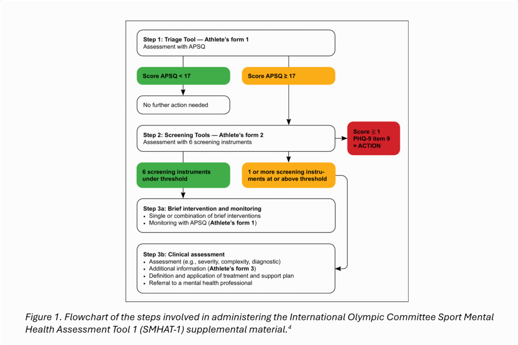 *** It is this writer’s opinion that it would be ideal for a sports medicine physician (psychiatrist or non-psychiatrist) to conduct this step, as it involves a comprehensive clinical assessment of a higher complexity, taking into account the medical and sports contexts, with the goal of creating an individualized management plan. ***